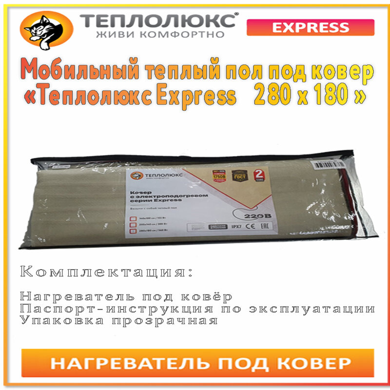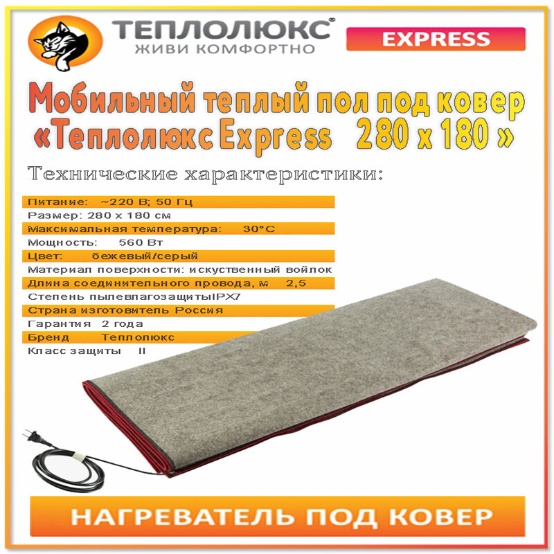 Мобильный электрический нагреватель под ковер Теплолюкс Express, 280х180 см, 560 Вт интересное: