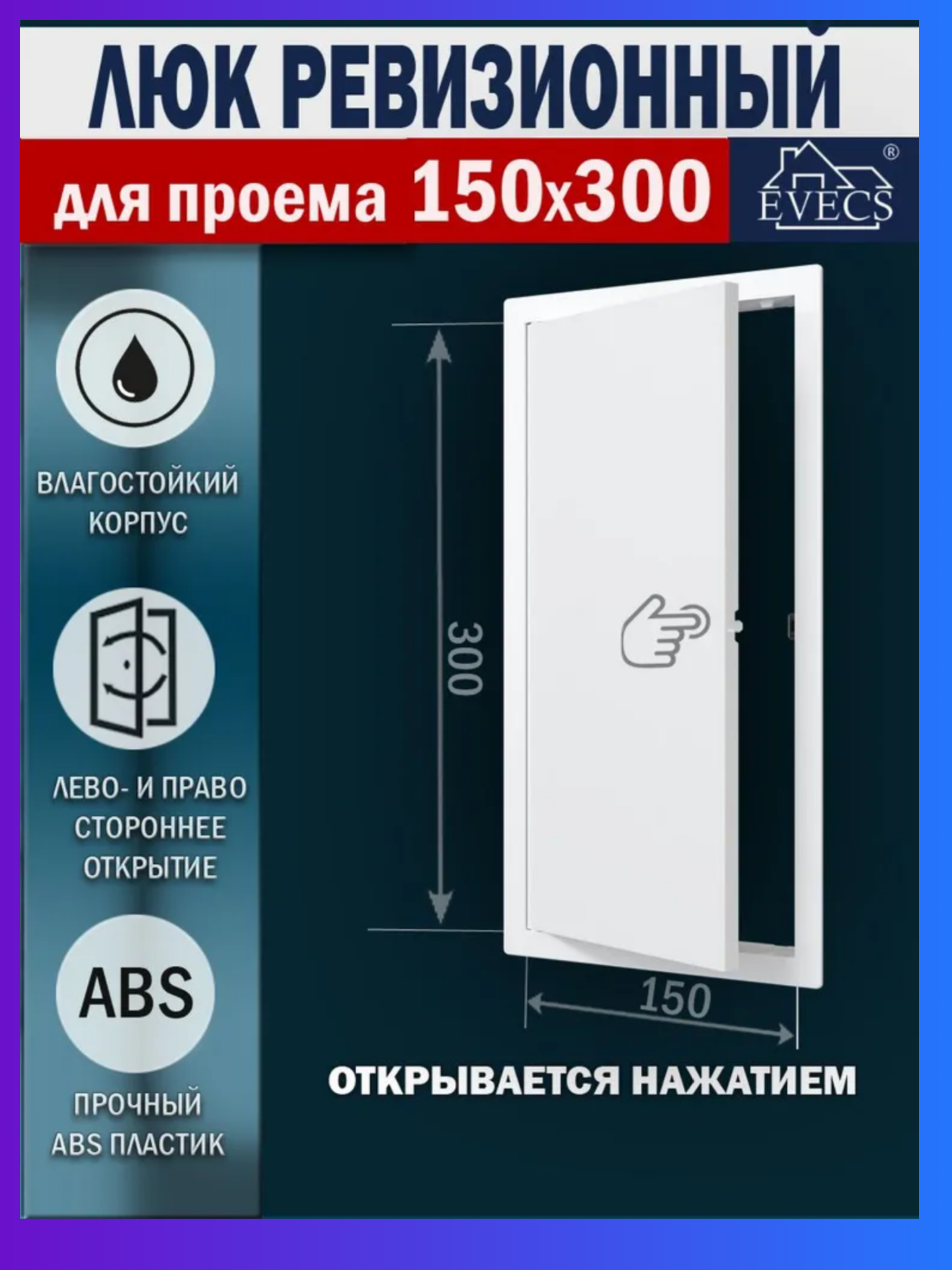 Люк-дверца ревизионная Evecs L1530N, ABS-пластик, нажимная, с фланцем 150 x 300 мм, 172 x 322 мм