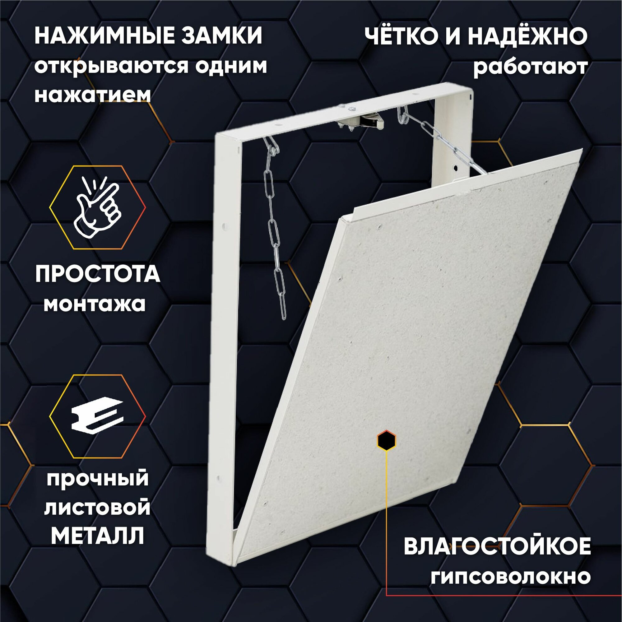 Ревизионный люк съемный под плитку Т90 30х30см стальной скрытый нажимной сантехнический технологический