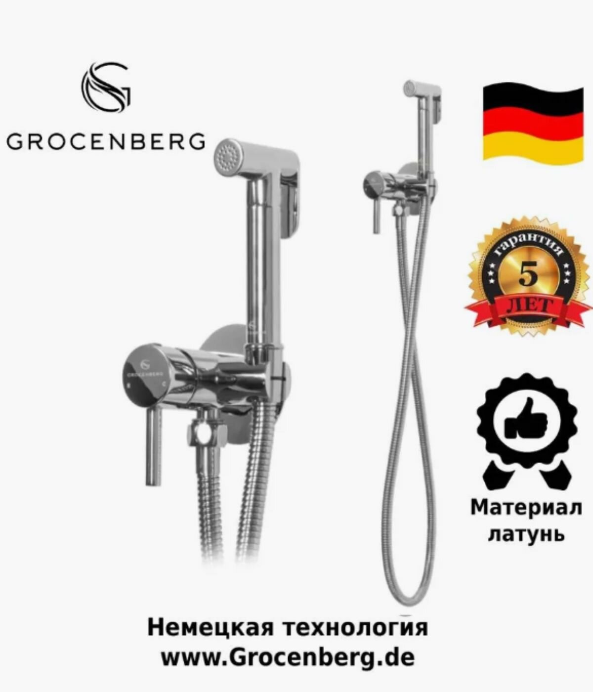 Гигиенический душ для биде со смесителем Grocenberg