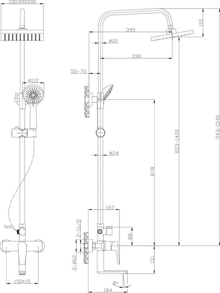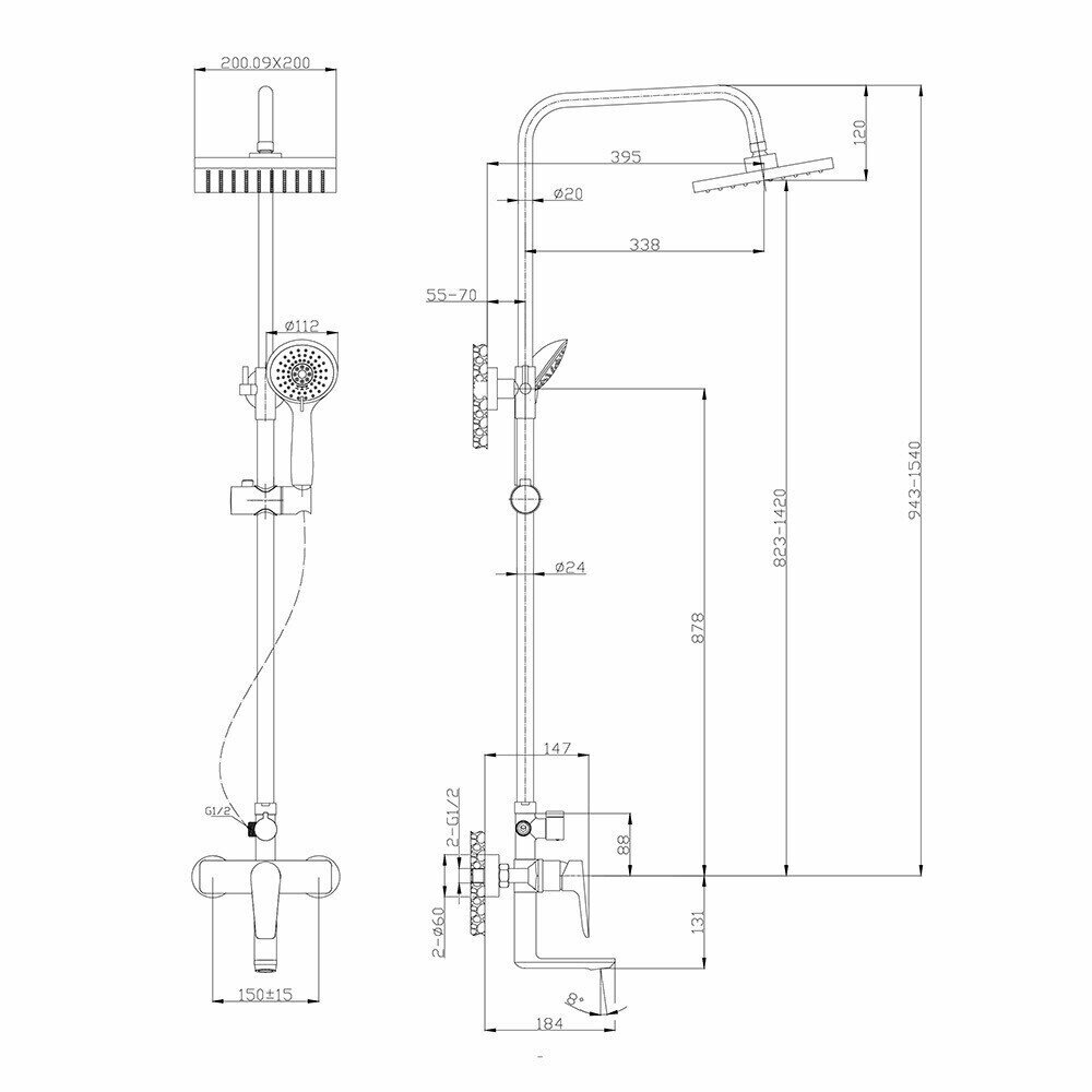| Комплектация | верхний душ / держатель лейки / душевая стойка / душевая штанга / излив для набора воды / кронштейн / кронштейн для верхнего душа / лейка / набор эксцентриков / настенный держатель / отражатель / прокладки / ручной душ / Смеситель / шланг / эксцентрик |