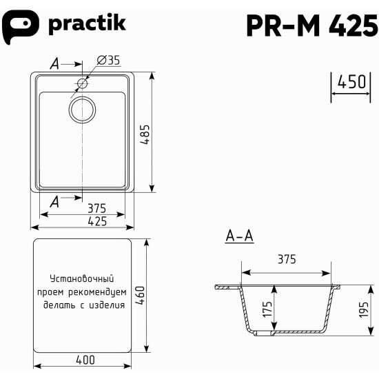 Мойка для кухни Practik PR-М 425 цвет черный, матовый