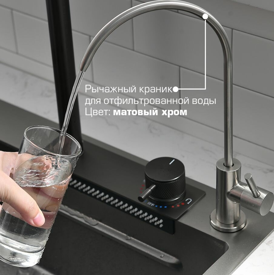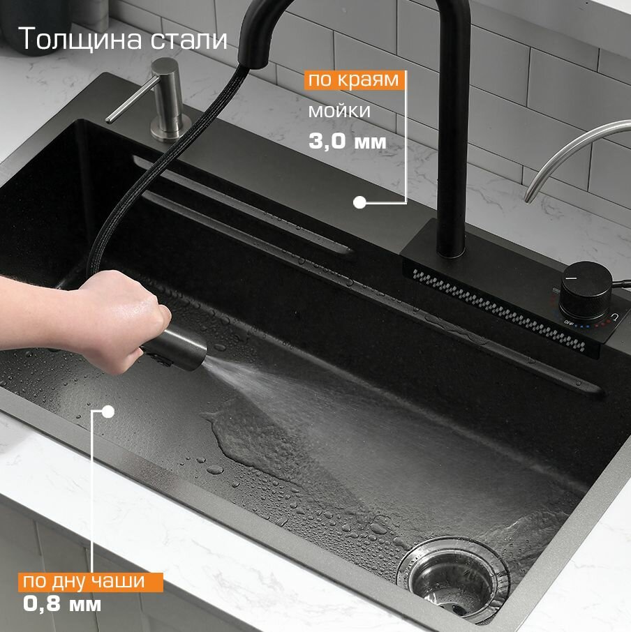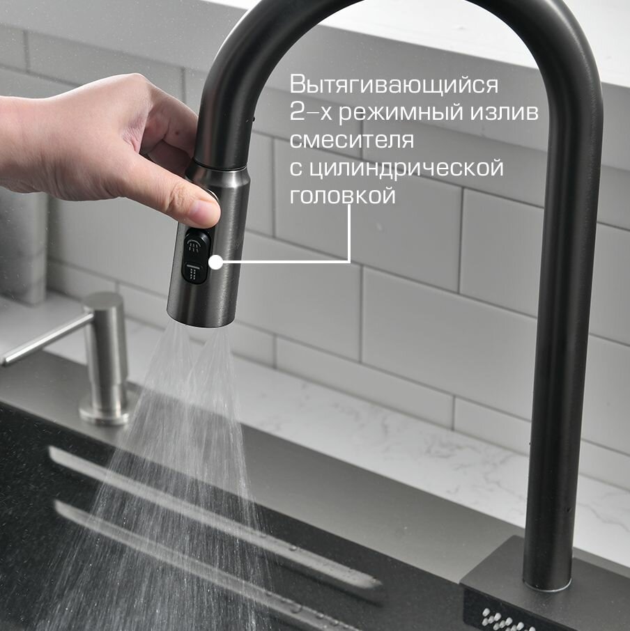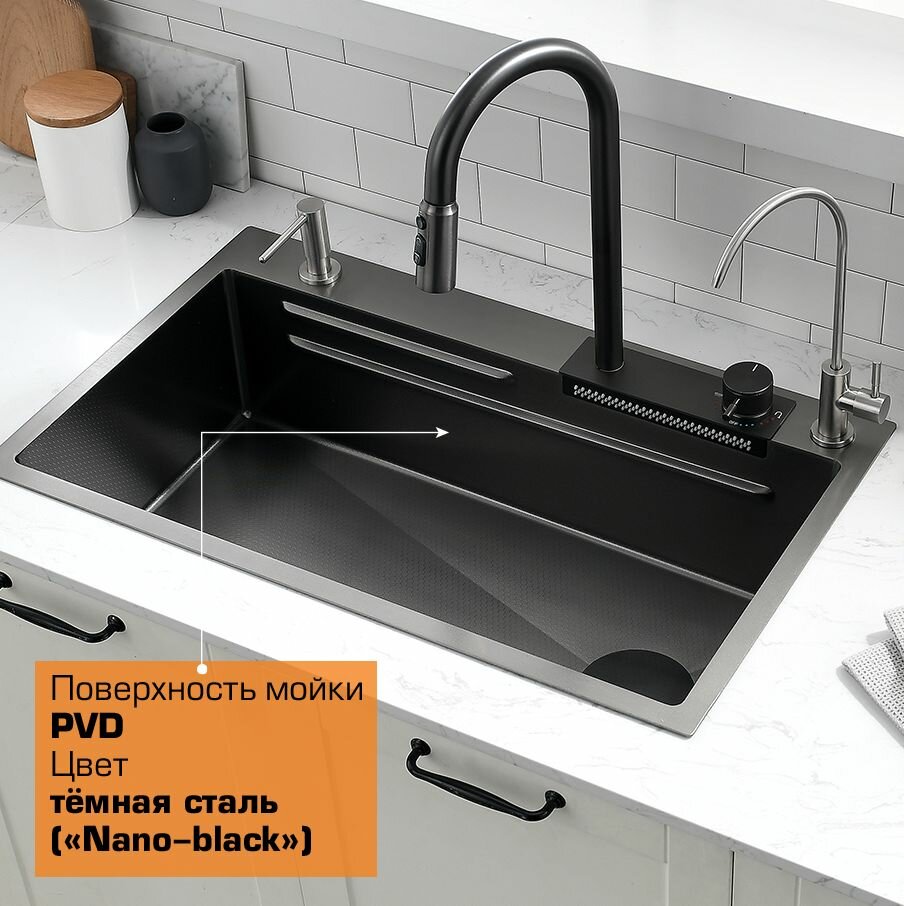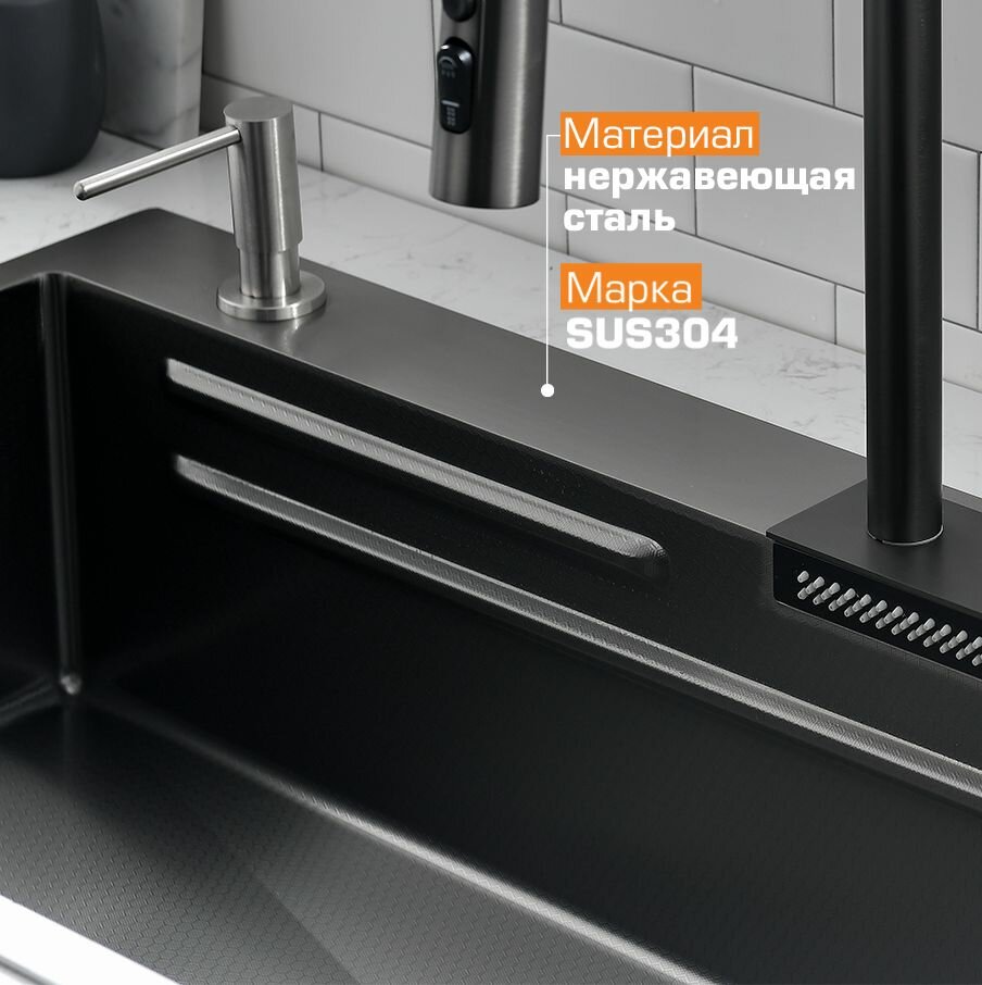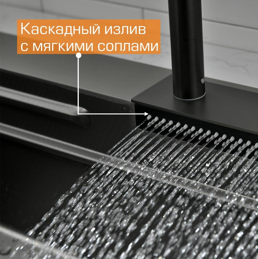 Многофункциональная кухонная мойка Esbano CASCADE 75 см оружейная сталь, со смесителем и разделочной доской интересное: