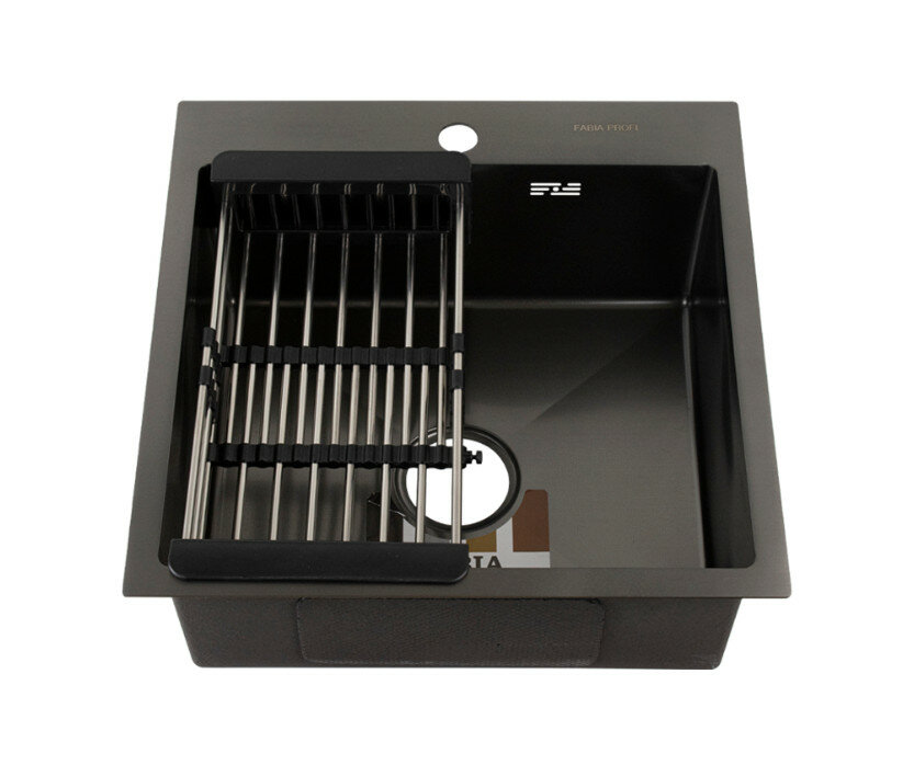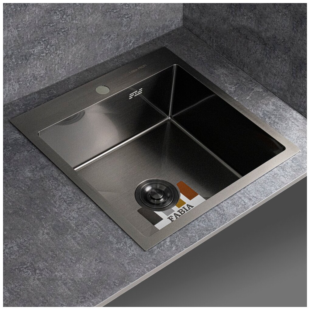 СохранитьКухонная мойка врезная из нержавеющей стали Fabia Profi 50503DG Декор 50x50 см Глубина 20см, Графит текстурная матовая поверхность, сифон и коландер в комплекте интересное: