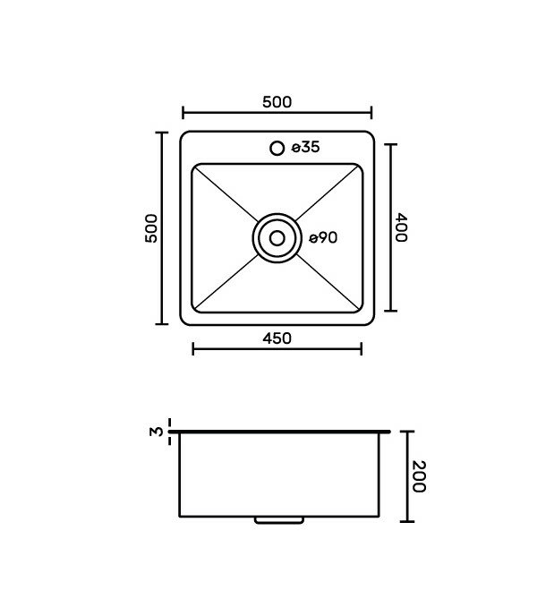 Кухонная мойка врезная из нержавеющей стали Fabia Profi 50503D 50x50 см декор, Сатин матовая текстурная поверхность