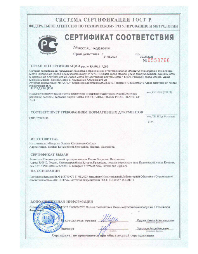 | Материал | нержавеющая сталь |