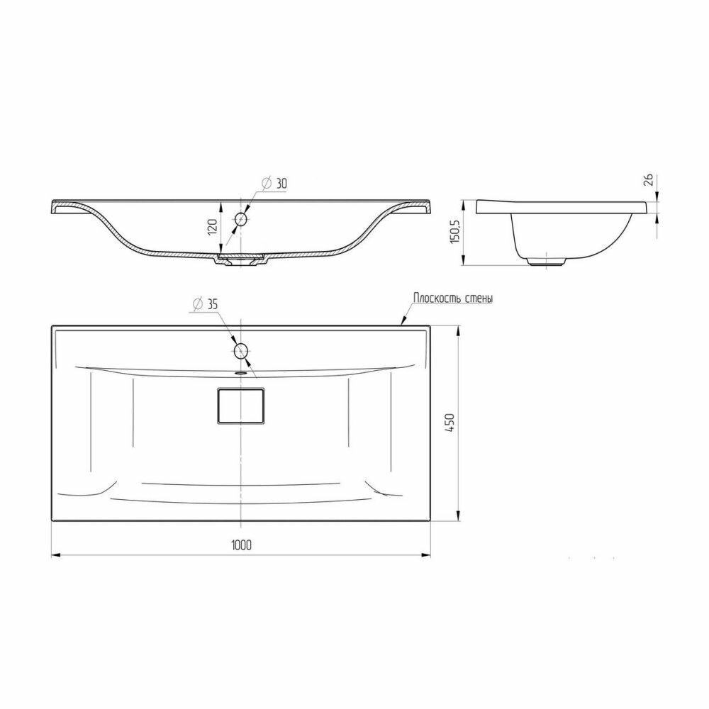 Умывальник "Paola Elegante 100" (литьевой мрамор, 1000х450х150) в комплекте с выпуском и переливом г. Ульяновск интересное: