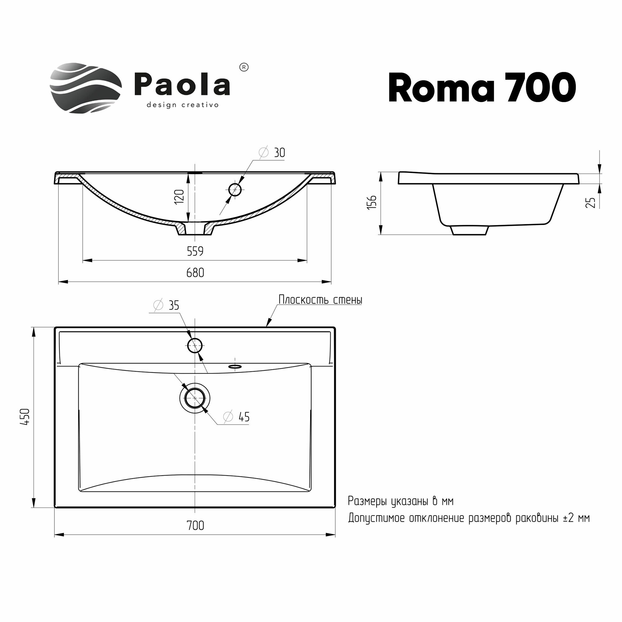 Раковина для ванной Paola Roma 700 белый интересное: