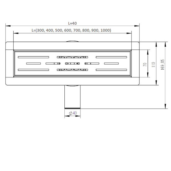 Трап для душа, c решеткой под плитку, длина 70/400мм VIEIR, c горизонтальным выходом из нержавеющей стали, с сухим затвором гидрозатвор DL40A