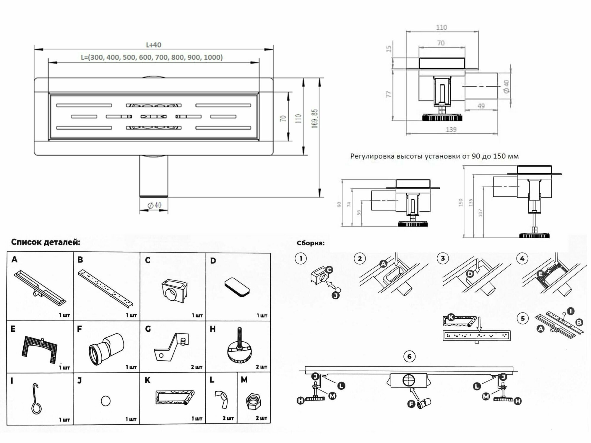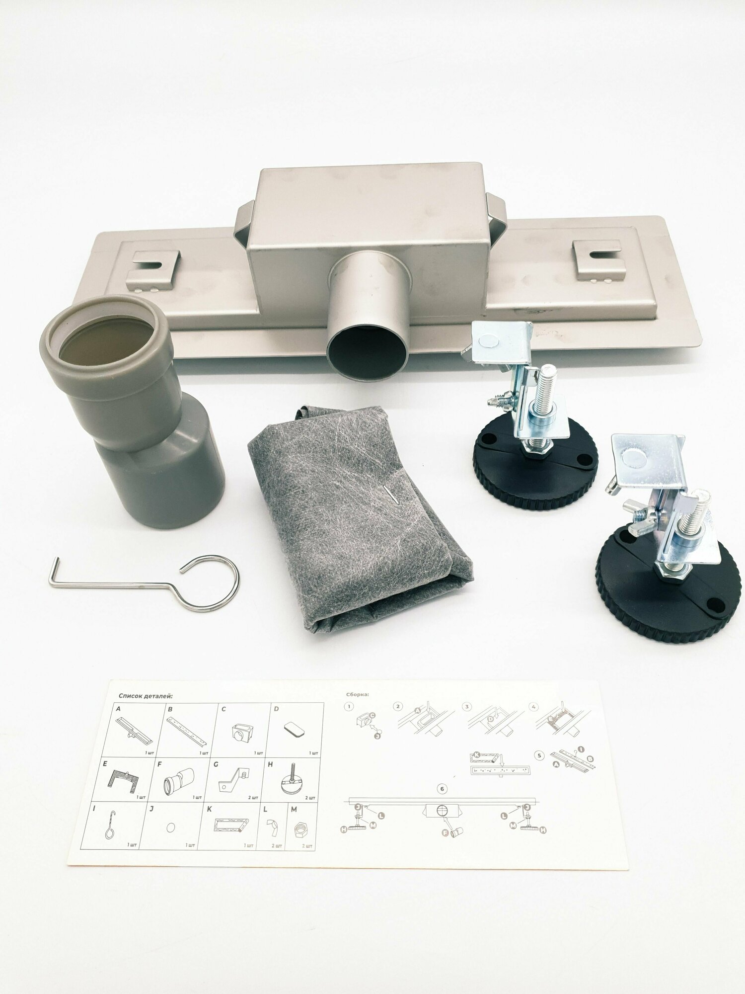 | Состав | гидрозатвор / декоративная накладка / изоляционный фланец / крюк для демонтажа / лоток / ножки / решетка / сифон / сухой затвор / трап |