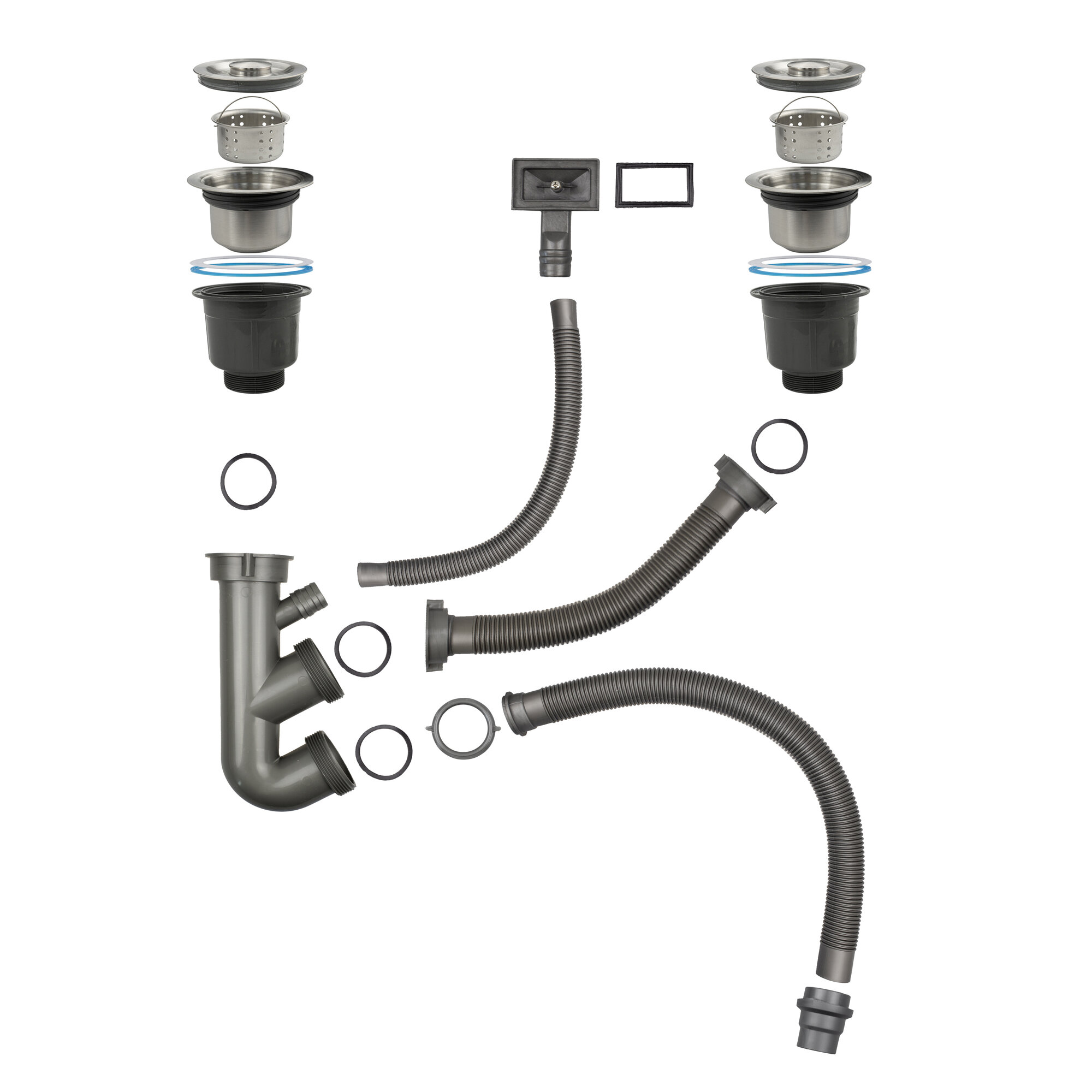 Сифон для мойки из нержавеющей стали двойной, Diadonna, с переливом, со съёмной корзинкой для мусора интересное: