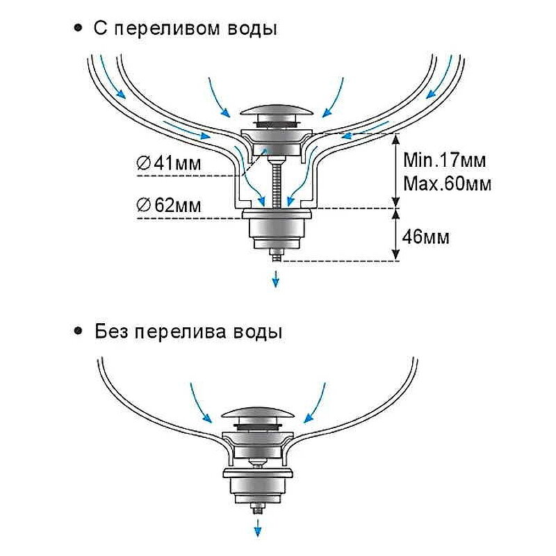 Донный клапан для раковины с переливом