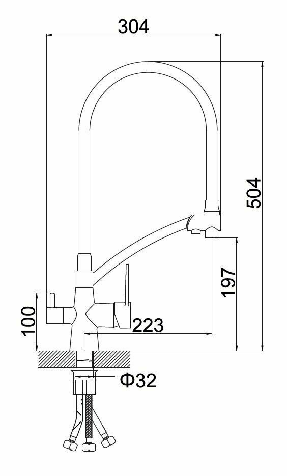 | Комплектация | смеситель, крепёж на гайке, три гибкие подводки 1/2" длиной 40 см, переходник для подключения фильтра, паспорт изделия |