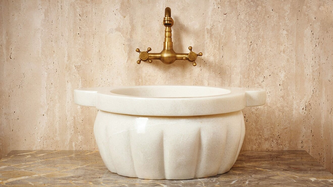 Белая курна для бани хамама Sheerdecor Emma 141072121 из натурального камня мрамора