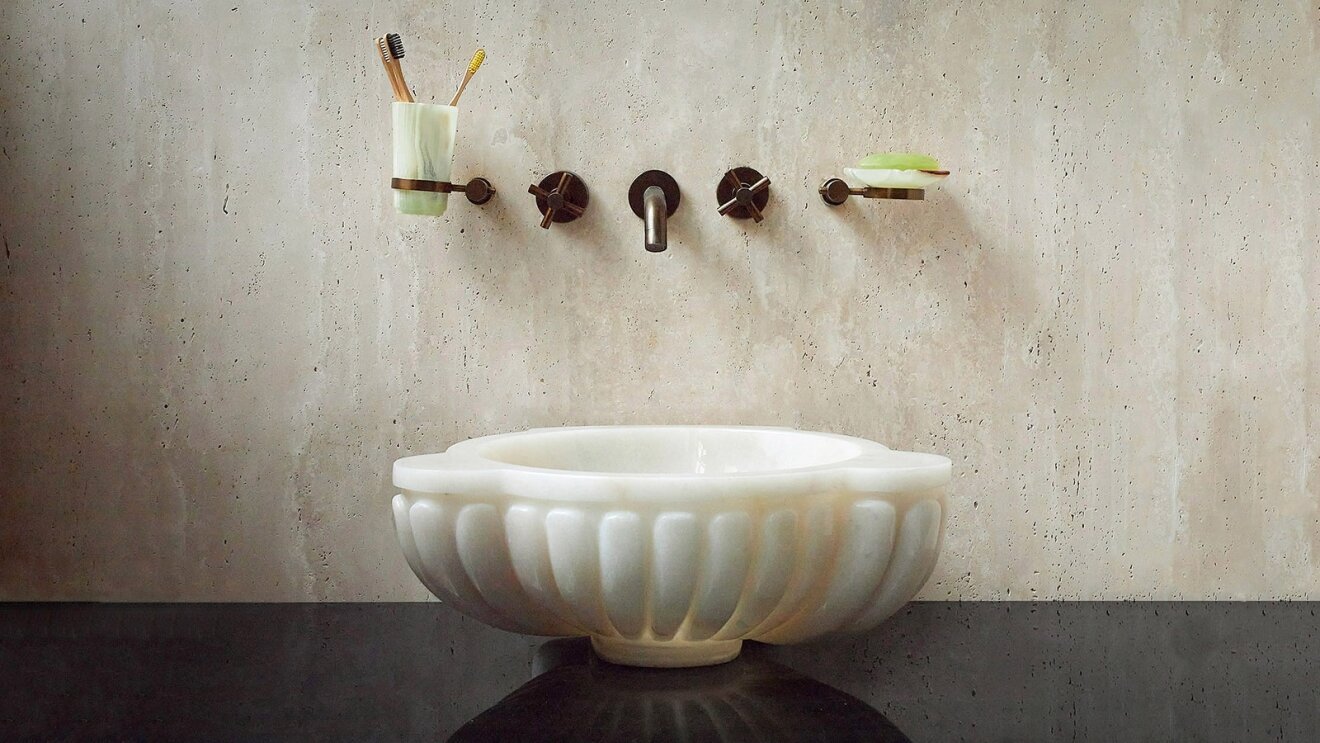 Мраморная курна для бани хамама Sheerdecor Mora 751000421 из белого натурального камня