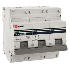 Выключатель автоматический трехполюсный ВА 47-100 100А C 10кА PROxima | код. mcb47100-3-100C-pro | EKF (10шт.в упак.)