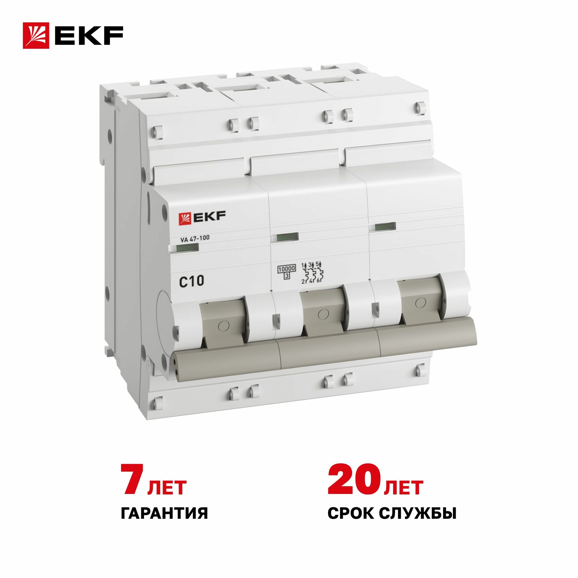 Выключатель автоматический трехполюсный 10А C ВА 47-100 10кА PROxima , EKF MCB47100-3-10C-PRO (1 шт.)