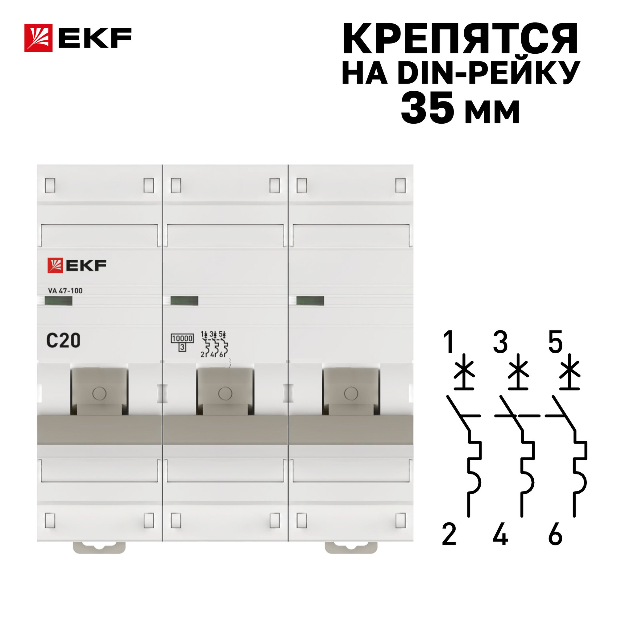Выключатель автоматический трехполюсный 10А C ВА 47-100 10кА PROxima , EKF MCB47100-3-10C-PRO (1 шт.)