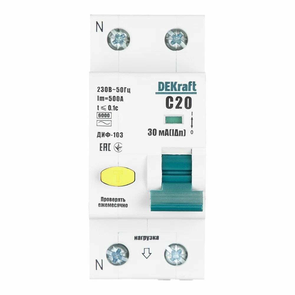 Дифференциальный автоматический выключатель DEKraft ДИФ-103 1P+N 20А 30мА 6кА класс AC