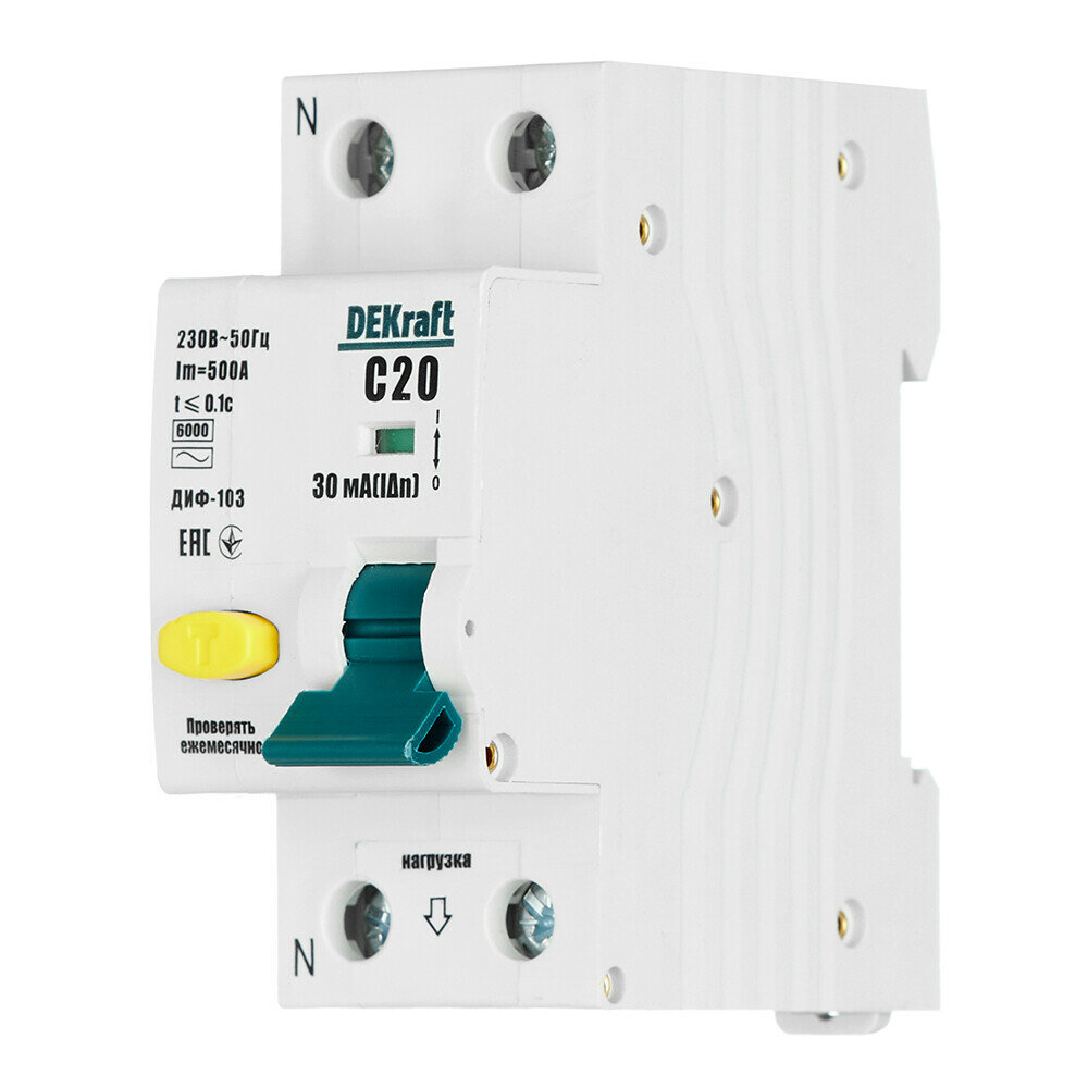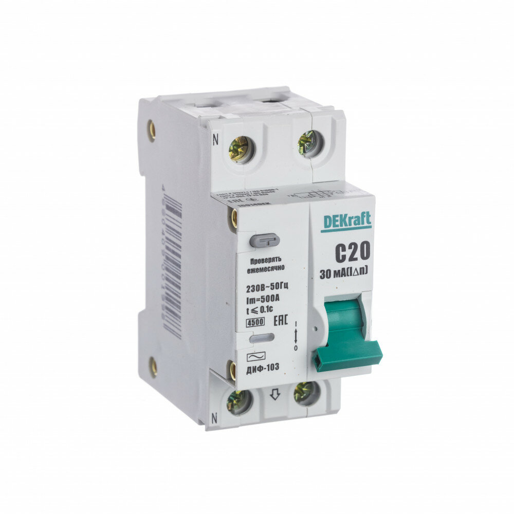 Дифференциальный автоматический выключатель DEKraft ДИФ-103 1P+N 20А 30мА 6кА класс AC
