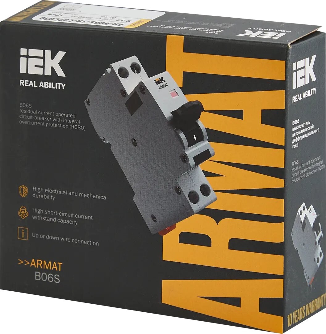 Автоматический выключатель дифф. тока IEK 16А АВДТ B06S 30мА тип AC 6кА ARMAT AR-B06S-1N-C16C030