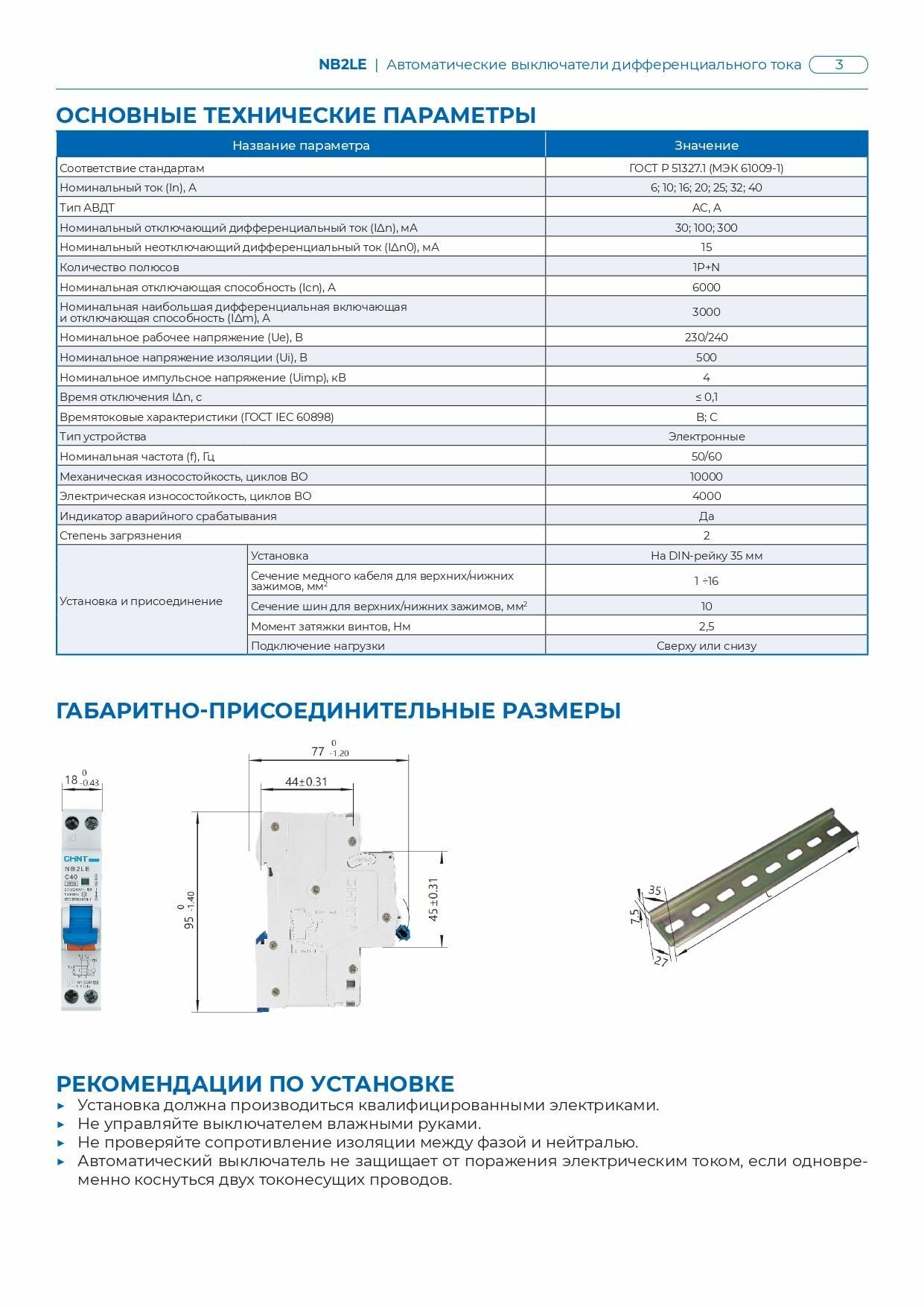 689002 Дифференциальный автоматический выключатель CHINT NB2LE 1П+N 16А 30мА, тип AC, 4.5кА, C, электронный