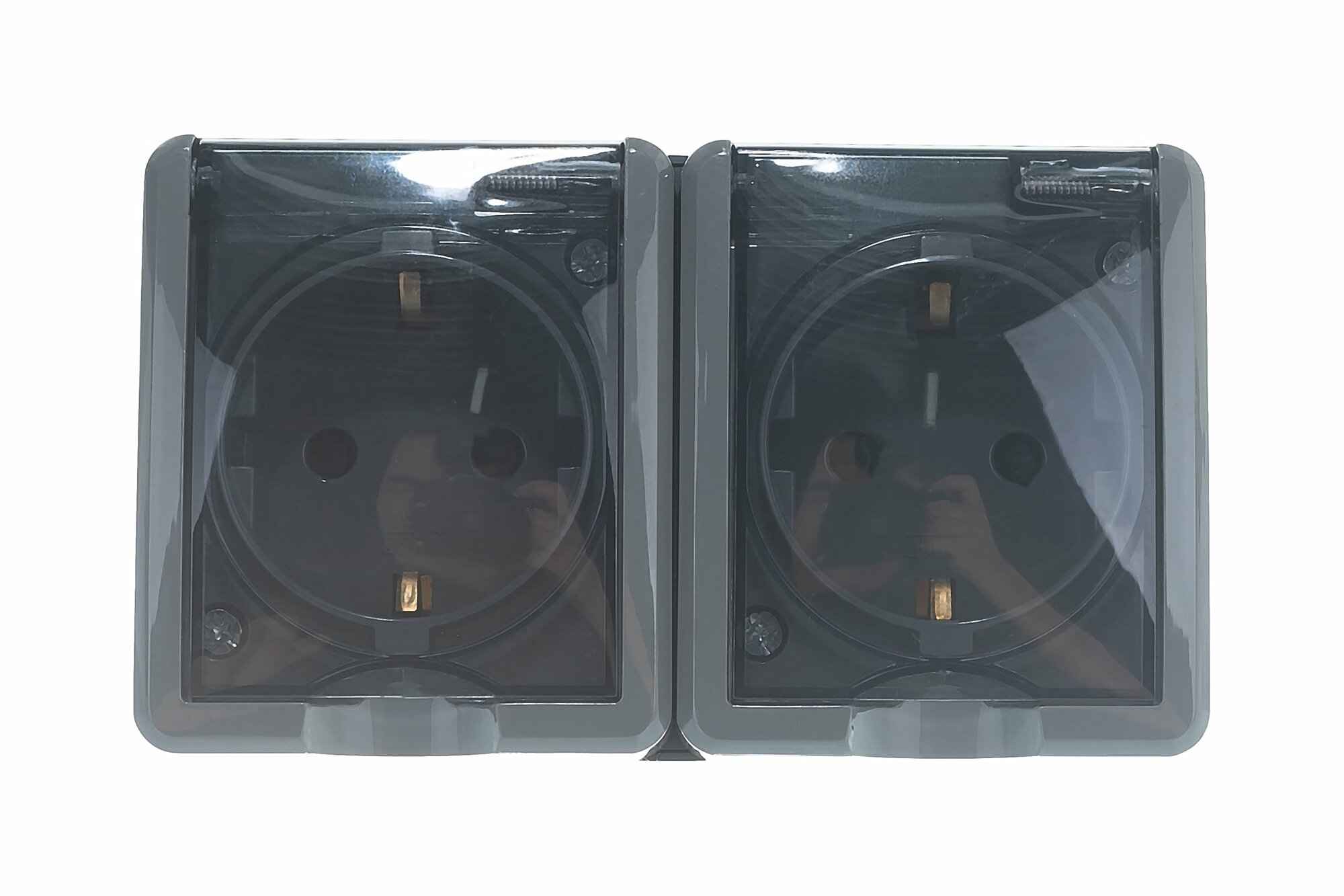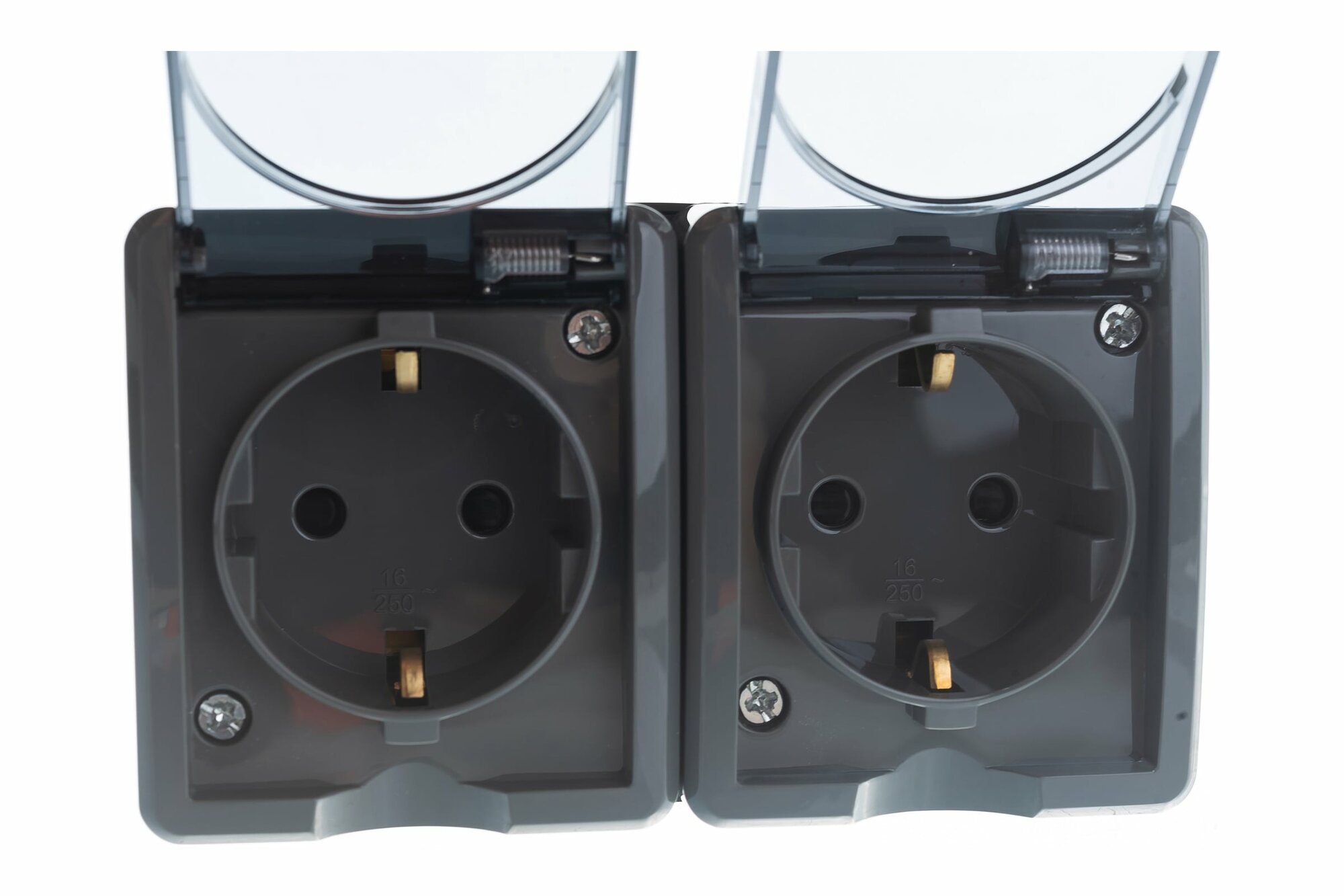 Розетка ЭРА 2х2P+E горизонтальная IP65, 16A-250В, ОУ, серый, 11-2603-03
