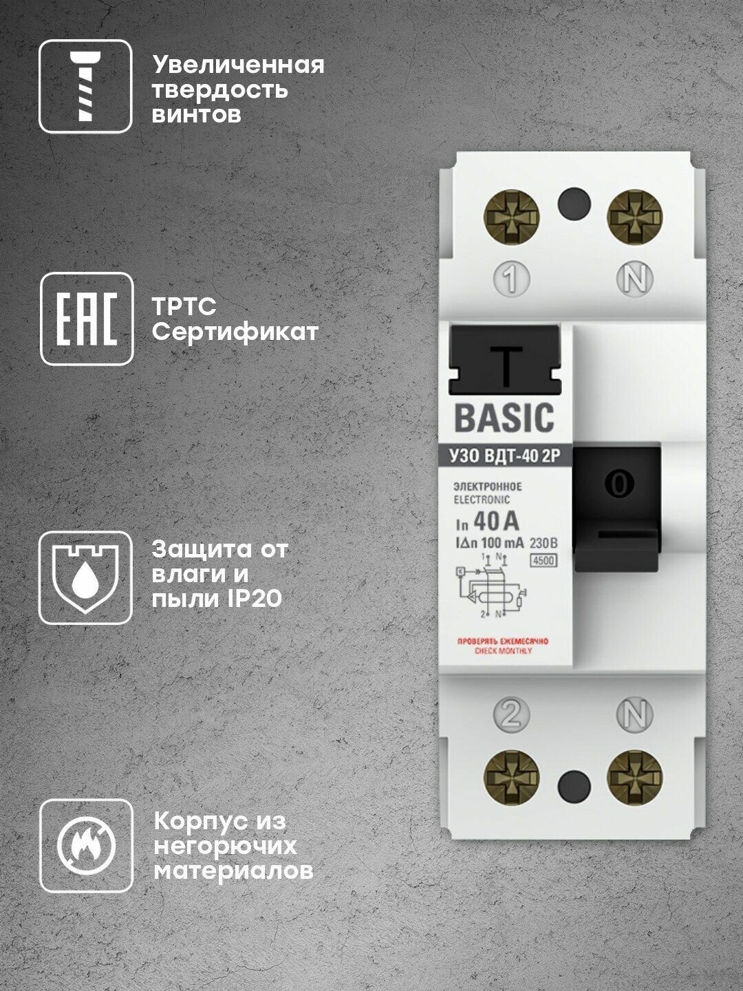 Устройство защитного отключения УЗО ВДТ-40 2P 63А-100мА (электронное) Basic