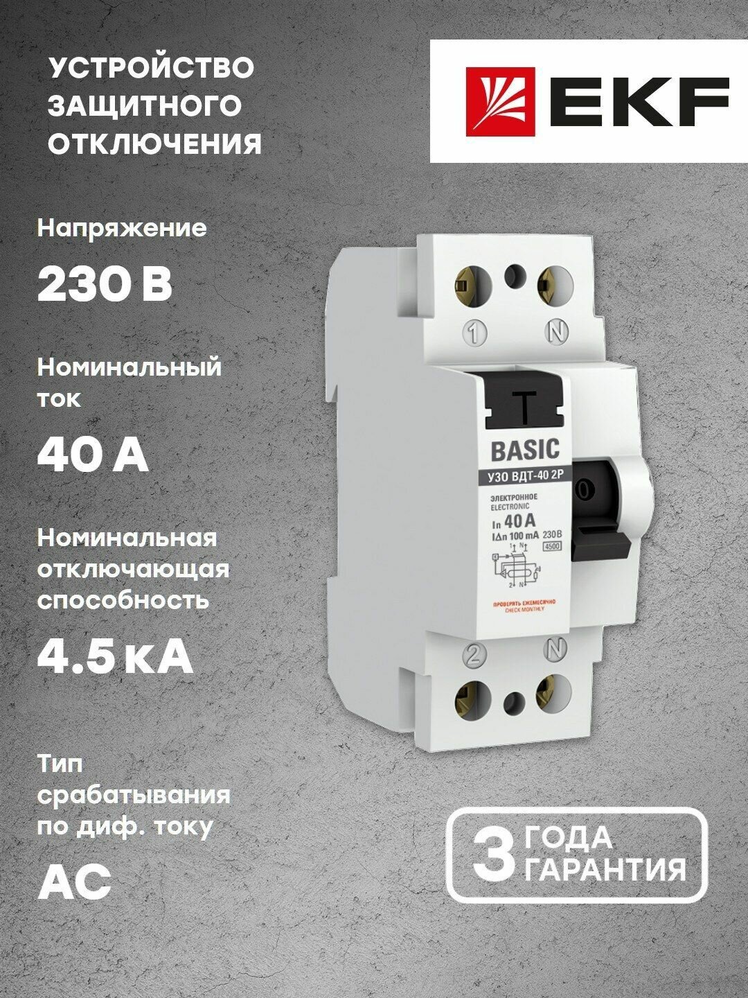СохранитьУстройство защитного отключения УЗО ВДТ-40 2P 40А/100мА (электронное) EKF Basic. интересное:
