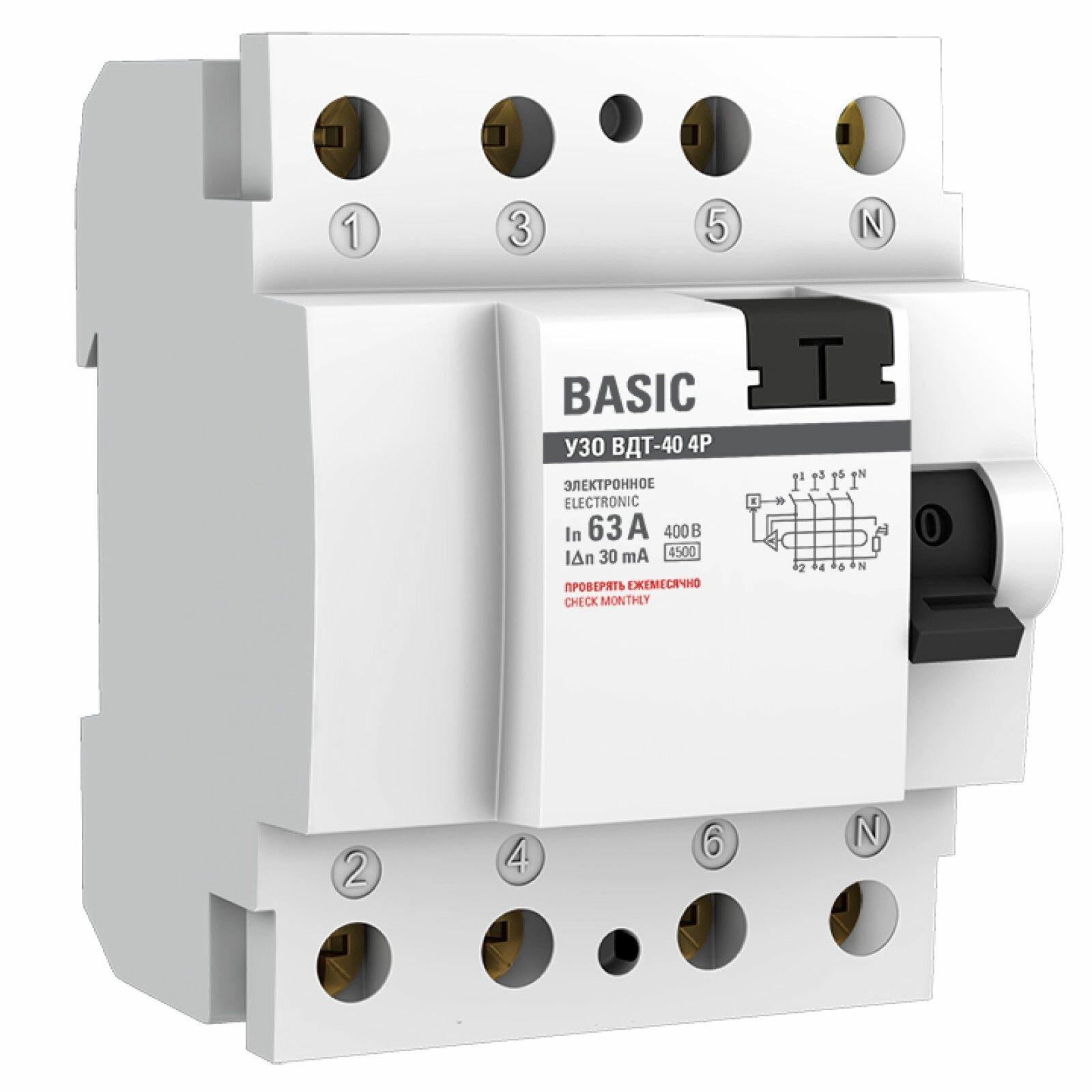 Устройство защитного отключения УЗО ВДТ-40 4P 63А- 30мА (электронное) Basic