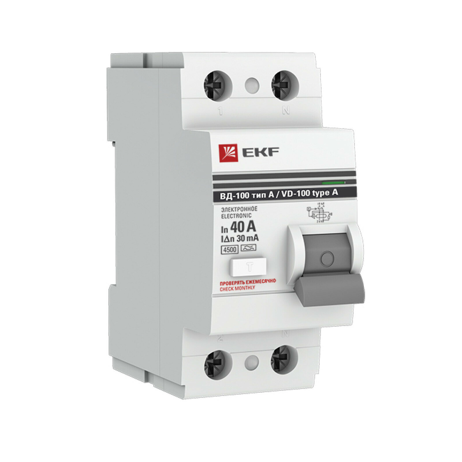 Устройство Защитного Отключения ВД-100 2P 40А-30мА (электр, тип А) EKF PROxima