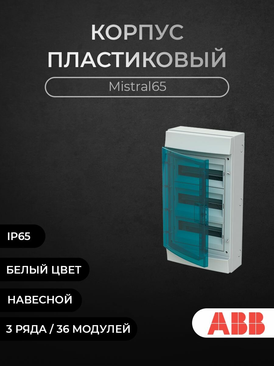 Бокс настенный на 36мод. прозрачная дверь 3 ряда, (с клемм) 320х600х155 Mistral65 ABB, 1SLM006501A1206 интересное: