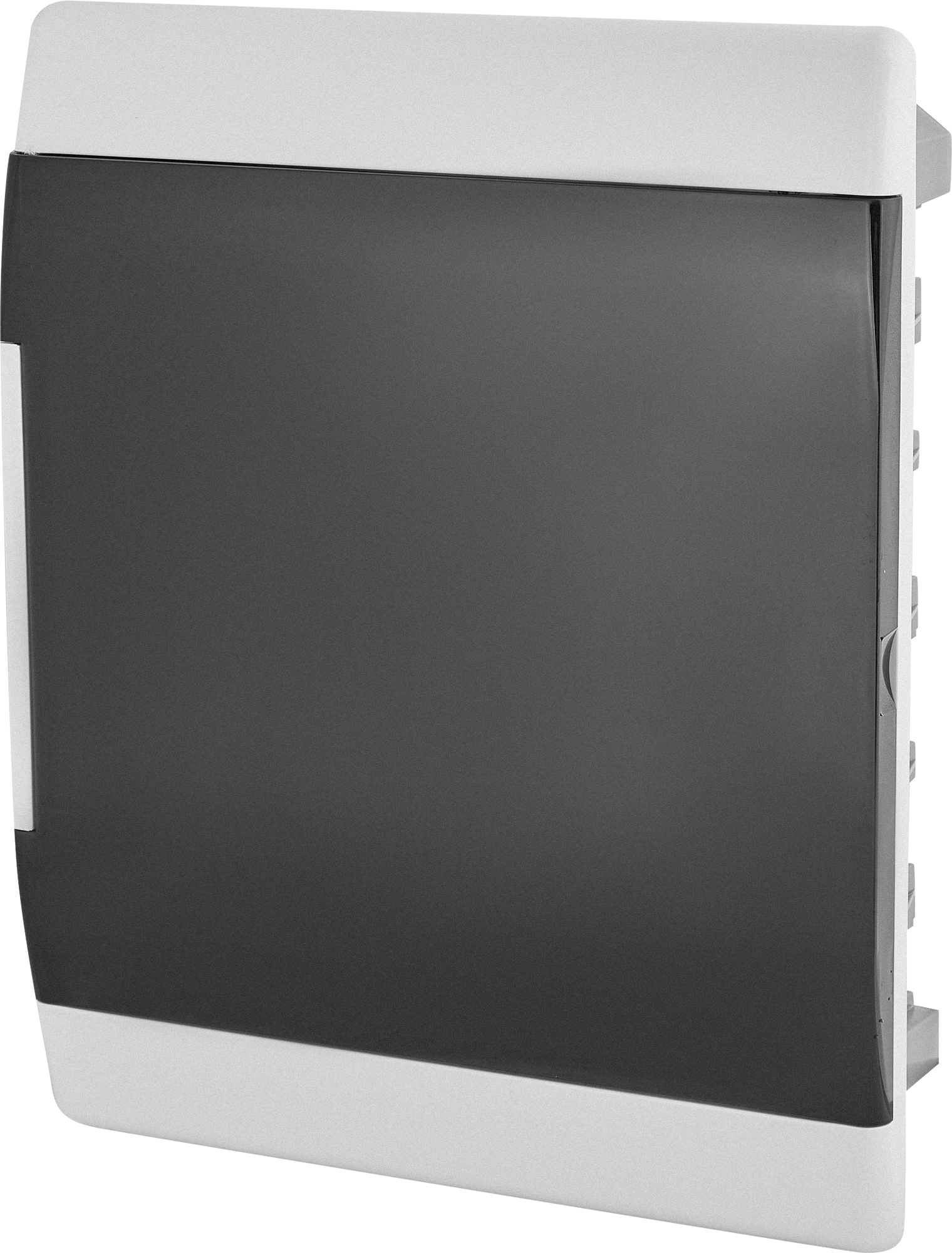 Купить Щиток слим-бокс электрический с дымчатой дверцей на 24 модуля, 2 DIN-рейки, 2 ряда, шины N и PE в комплекте, пластиковый - Щит распределительный встраиваемый ЩРВ-П-24 "SlimBox" IP41 EKF