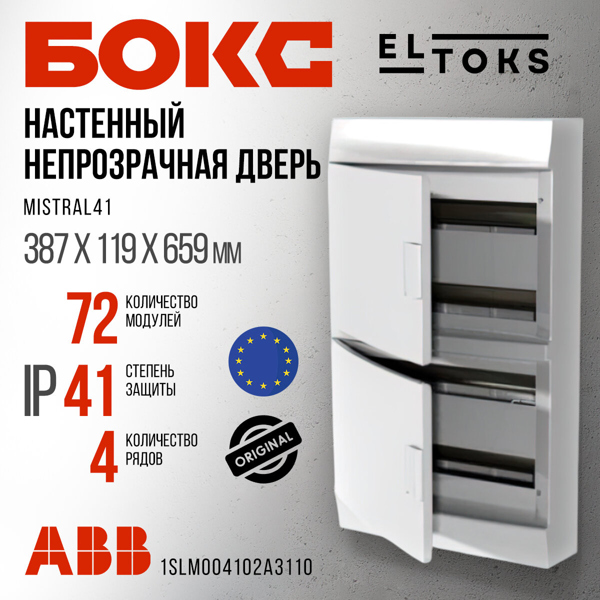 Бокс навесной ABB MISTRAL41W на 72 модуля (4х18) с клеммами, белая дверь 1SLM004102A3110