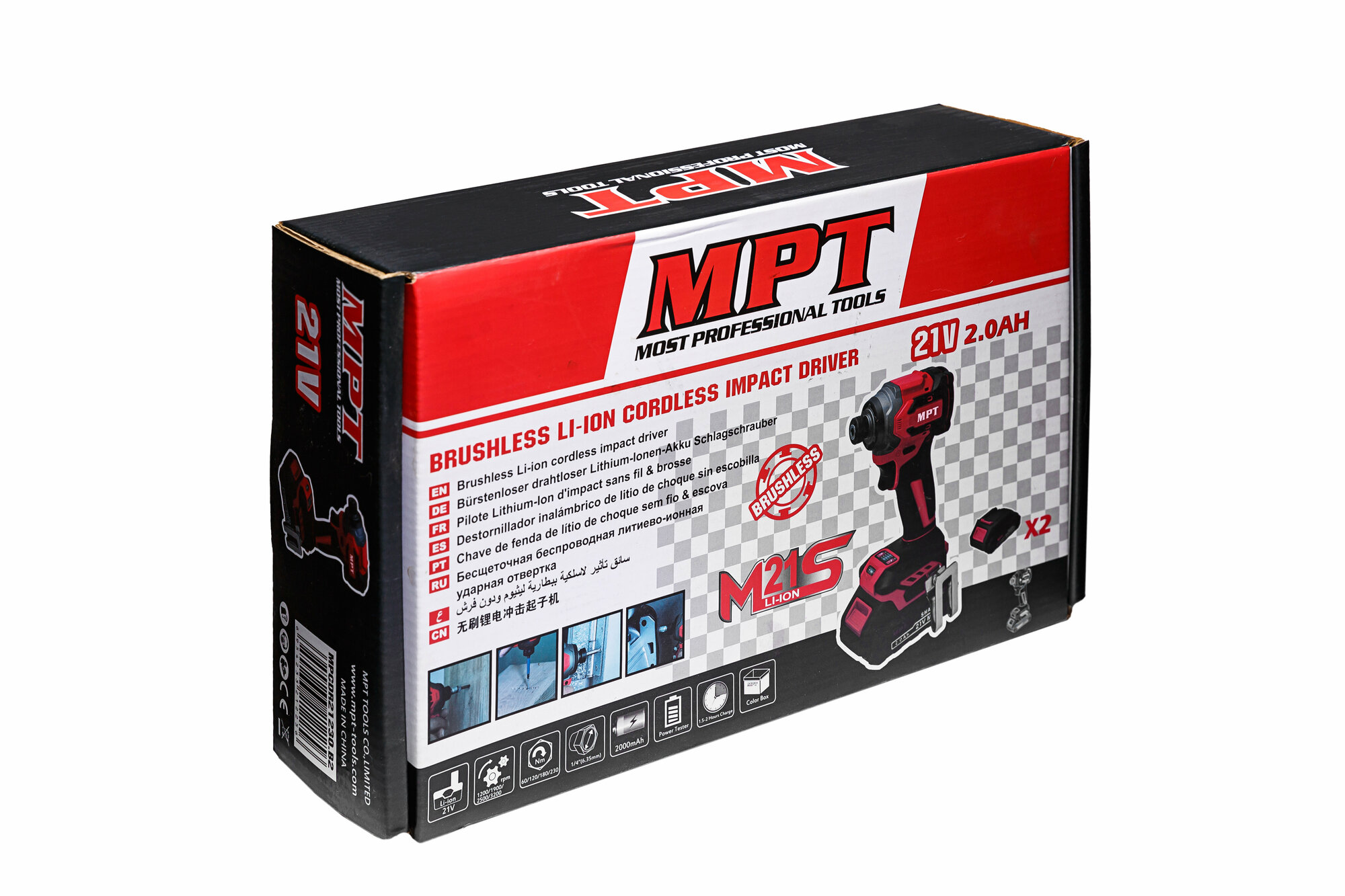 Купить Винтоверт - шуруповерт аккумуляторный ударный, бесщеточный, импакт, 21В 230Нм 2х2Ач MPT