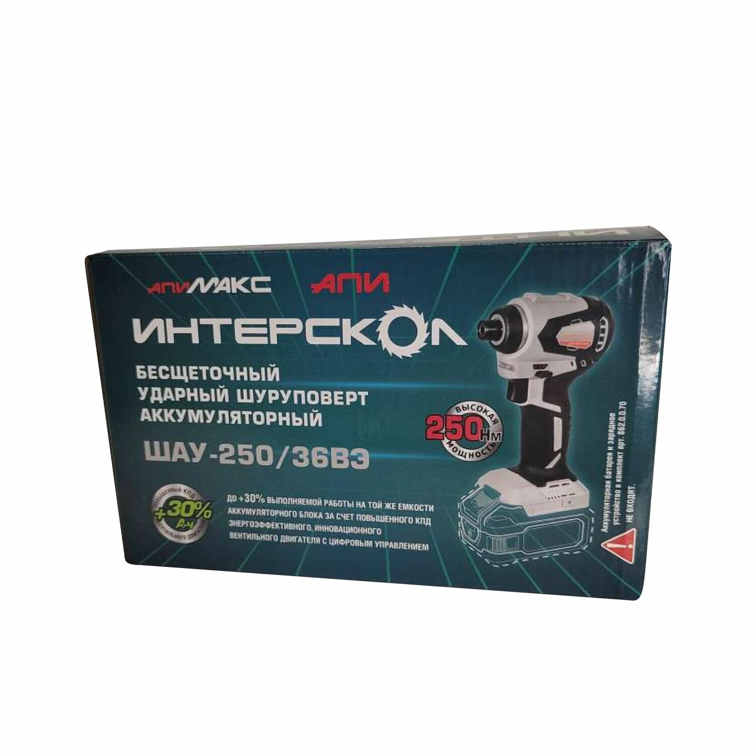 Шуруповерт ударный бесщеточный ИНТЕРСКОЛ ШАУ-250/36ВЭ АПИ, арт. 862.0.0.70, без АКБ и ЗУ, картон