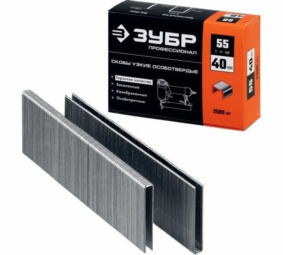 Особотвердые тонкие скобы ЗУБР Профессионал широкие, тип 55, 40 мм, 2500 шт
