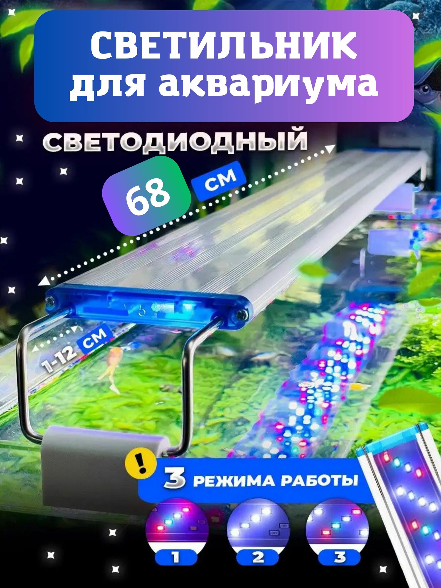 Лампа для рыб раздвижная светодиодная в аквариум цветная интересное: