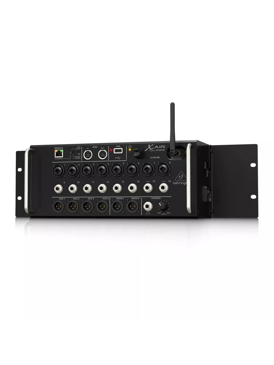Behringer XR16 цифровой микшер, 8 мик Midas XLR + 8 лин Jack, выходы Main L/R XLR, Aux 1-4 XLR, 16 кан/4FX/6BUS, ETHERNET,WiFi, USB-стерео зап/воспрои