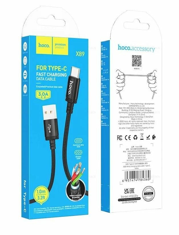 USB Кабель Type-C, HOCO, X89, 1м, черный