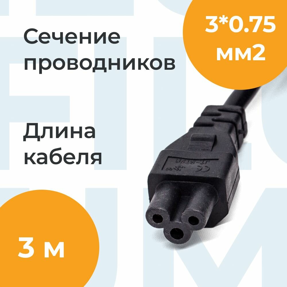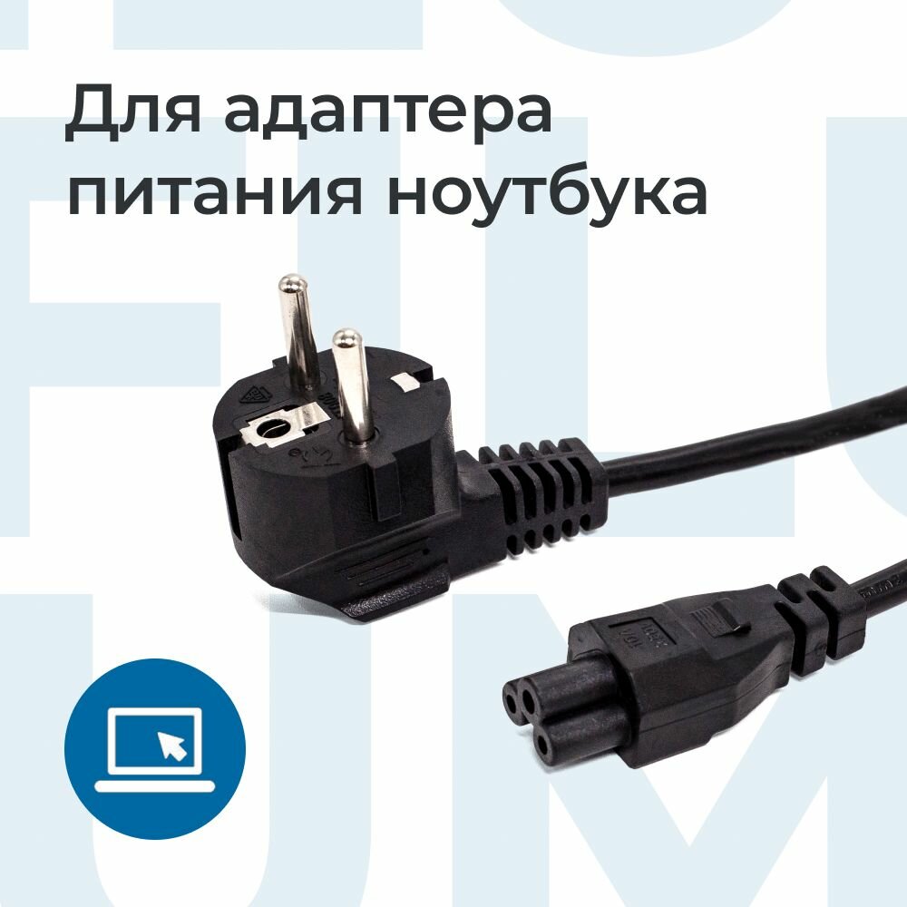 Кабель питания для ноутбука S22 угловая C5 клевер Штепсель 3*1.0мм 220в 10А - 1.8м чёрный