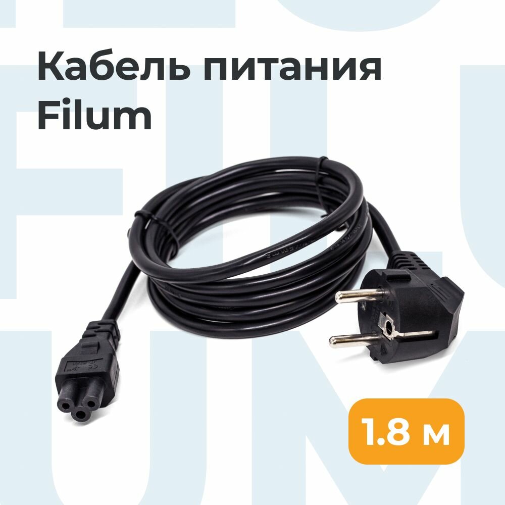 Кабель питания Filum FL-PC10-EU-C5-1.8M CEE 7/7- С5, 3х0.75мм², 220В, 10A, чёрный, 1.8м
