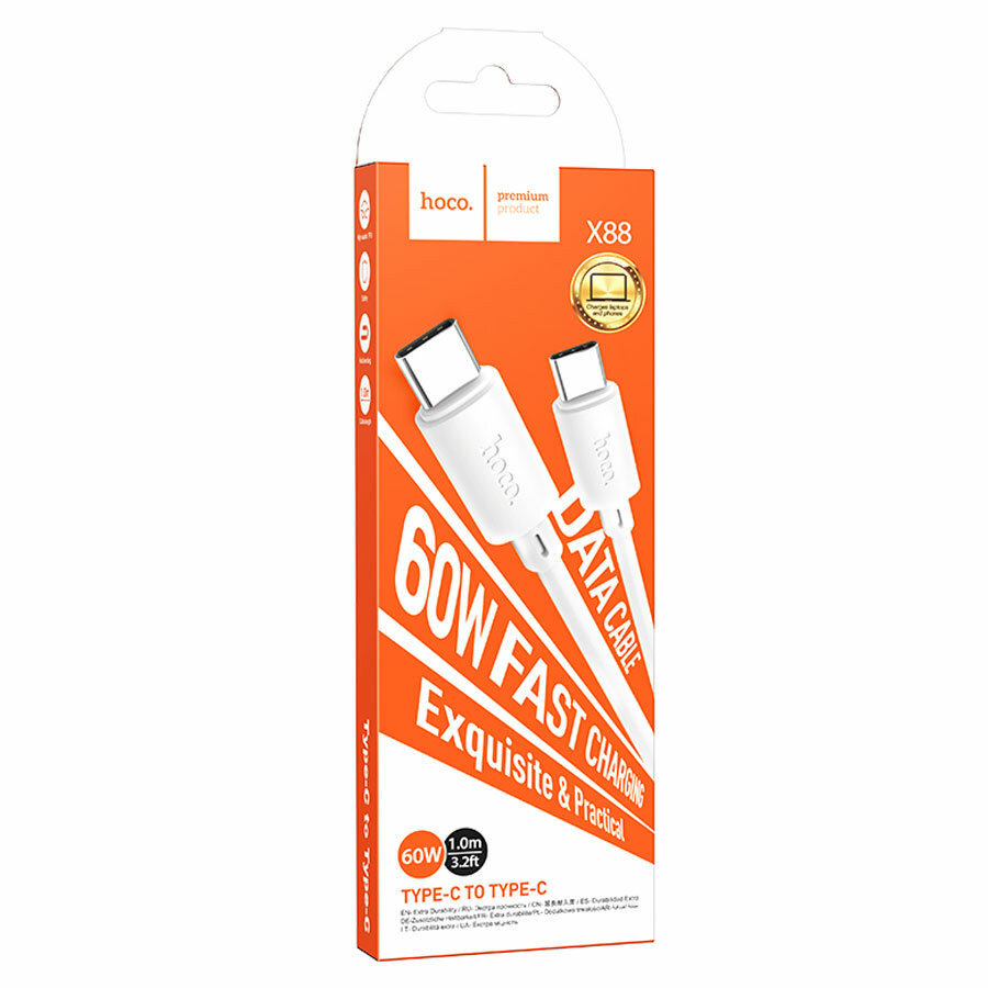 Usb Кабель-зарядка Type-C на Type-C Hoco X88 3.0A 60W 1M белый