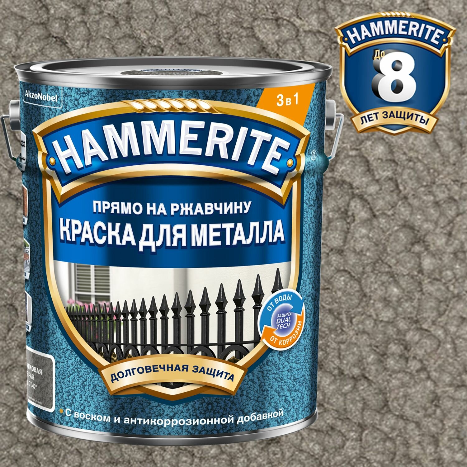 HAMMERITE краска для металла с молотковым эффектом, прямо на ржавчину, серая (2,5л)