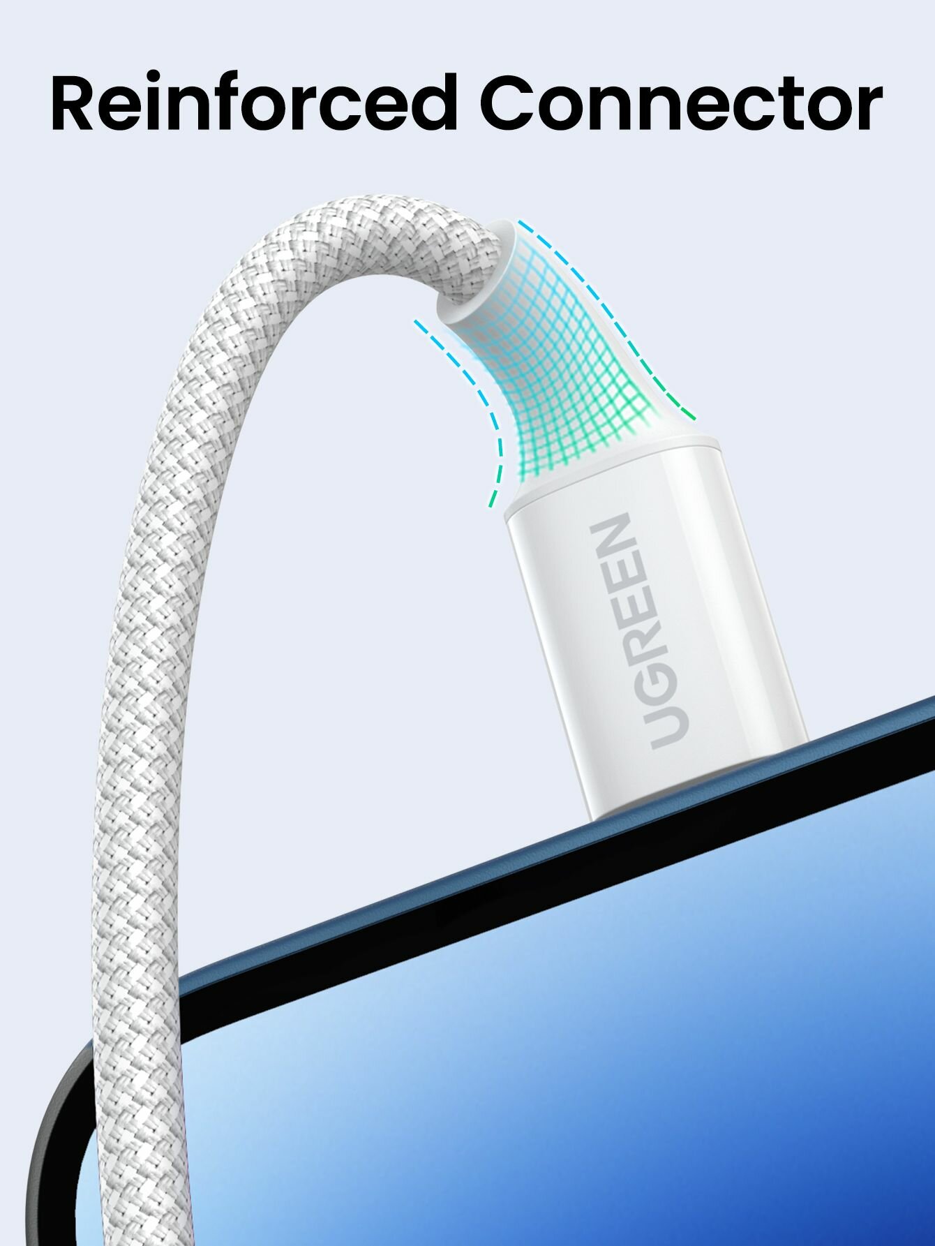 Кабель UGREEN US557 (15268) USB-C to USB-C PD Fast Charging Silicone Braided Cable. Длина: 1,5 м. Цвет: белый.