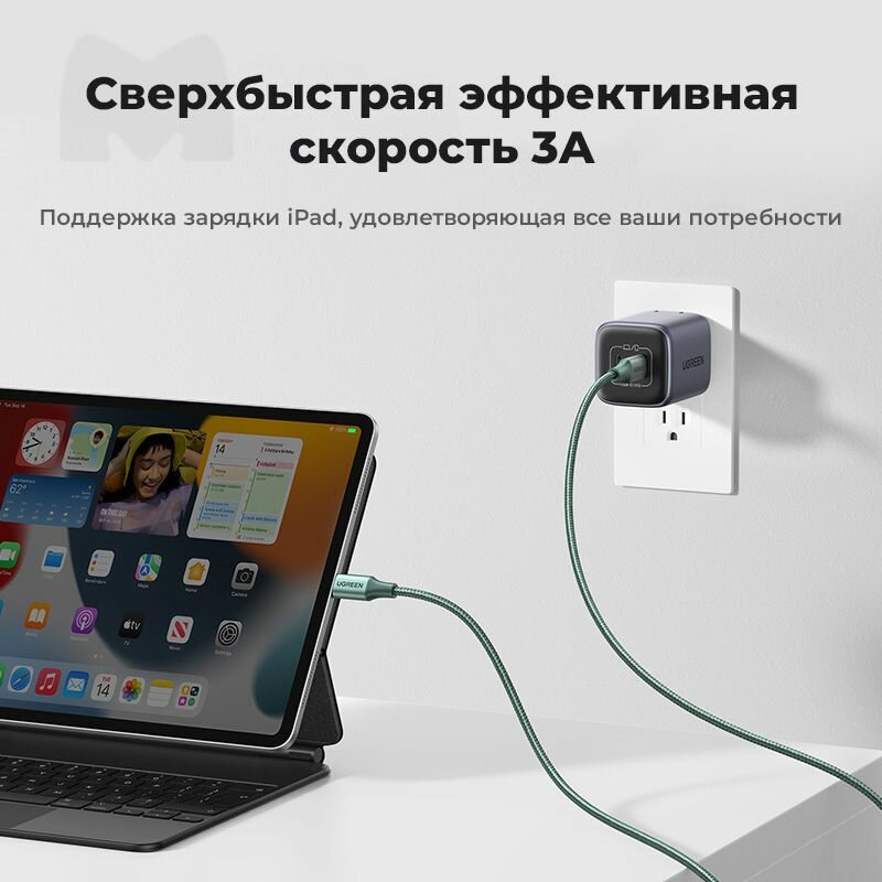 СохранитьКабель для быстрой зарядки и передачи данных UGREEN US304 / USB-C на Lightning / MFi сертификат / Длина 1м / цвет темно-зеленый (80564) интересное: