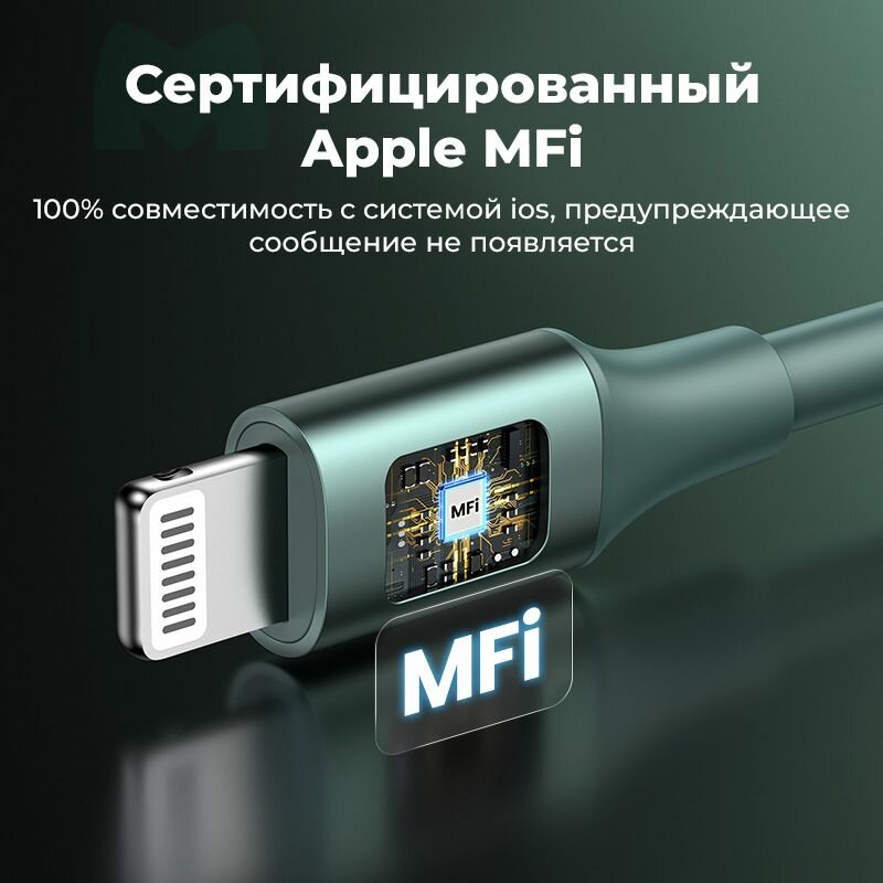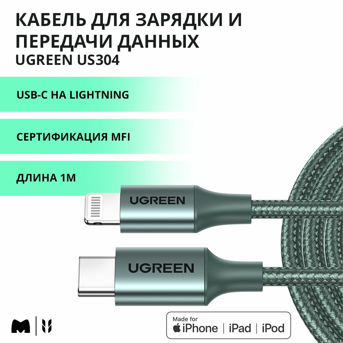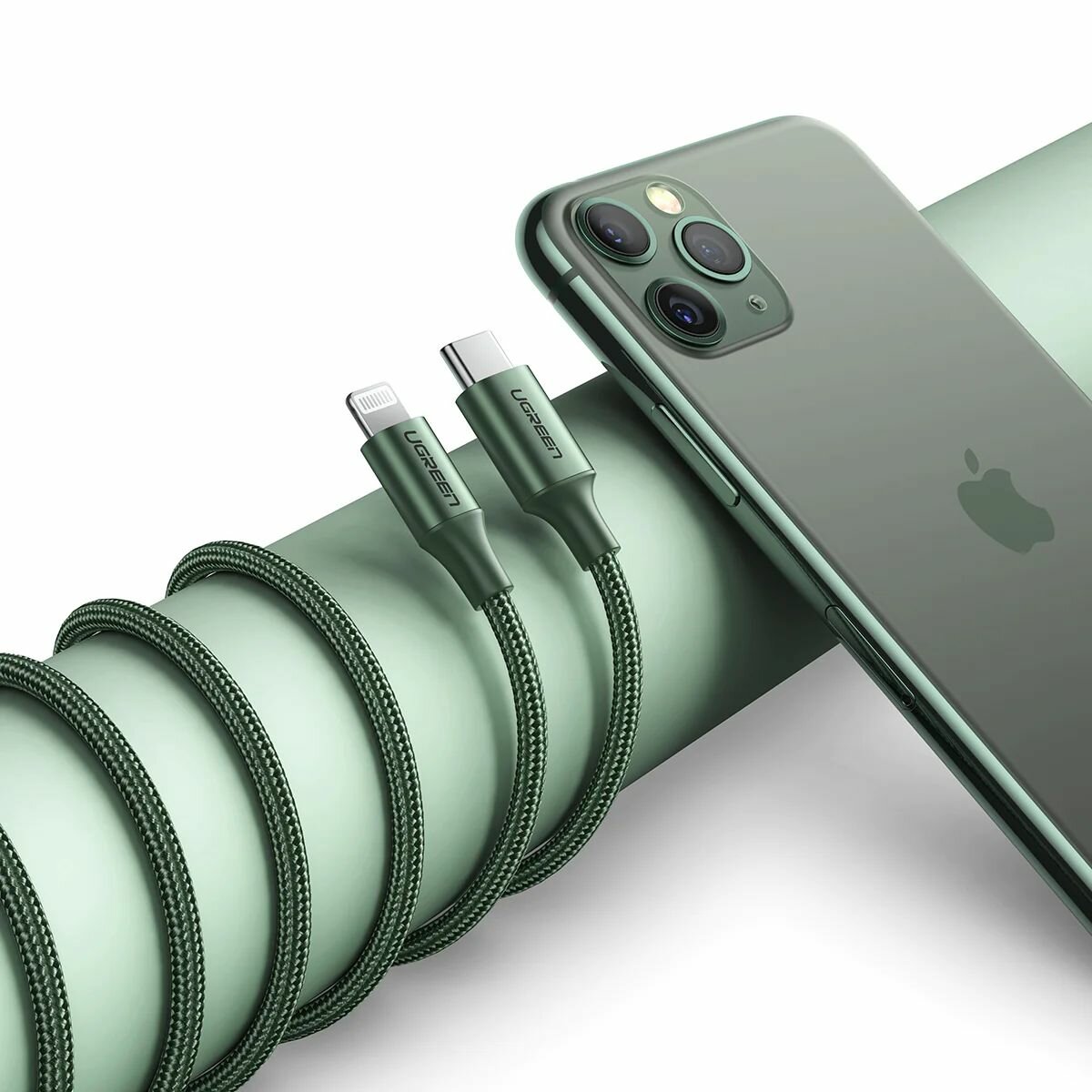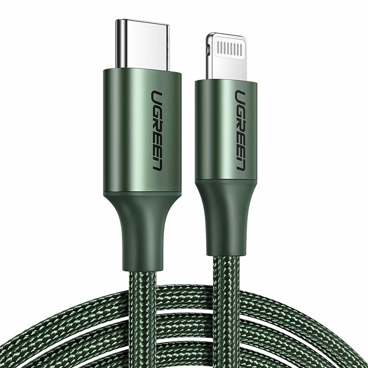 Купить Кабель для быстрой зарядки и передачи данных UGREEN US304 / USB-C на Lightning / MFi сертификат / Длина 1м / цвет темно-зеленый (80564)