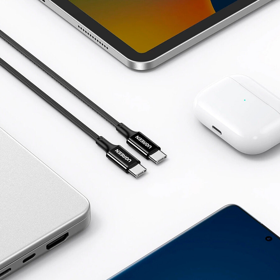 Кабель UGREEN US535 (15311) USB-C to USB-C 240WPD Fast Charging Cable в оплетке. Длина: 1 м. Цвет: серый космос.