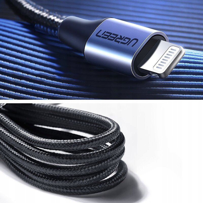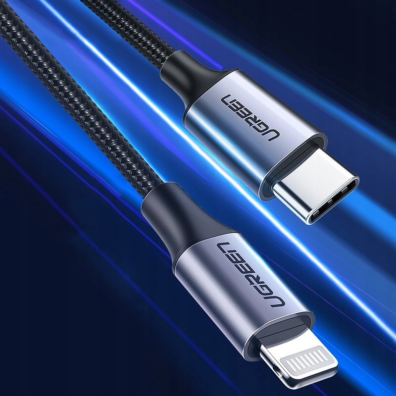 Кабель UGREEN US304 (60759) USB-C to Lightning M/M Cable Aluminum Shell Braided. Длина 1 м. Цвет: черный