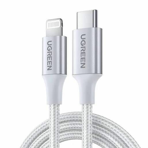 Купить Кабель UGREEN US304 (70525) USB-C to Lightning M/M Cable Aluminum Shell Braided. Длина 2 м. Цвет: серебристый.
